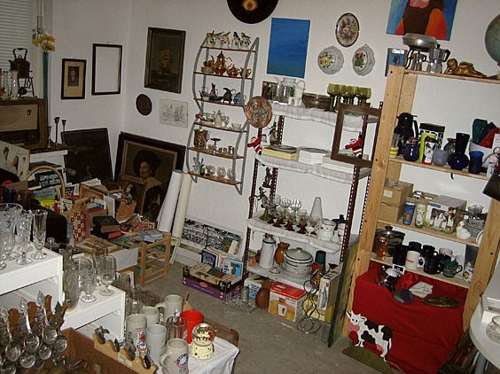 ....warum warten, bis es wieder warm ist, dann früh aufstehen, den ganzen Krempel zur Bürgerweide karren, Standmiete zahlen und eventuelle Übrigbleibsel wieder eintüten, wenn es doch auch einfacher geht - wir lassen die Leute einfach zu uns kommen. Idealerweise ist nämlich die untere Etage in unserem Haus derzeit noch frei, bzw. steht kurz vor der Renovierung.