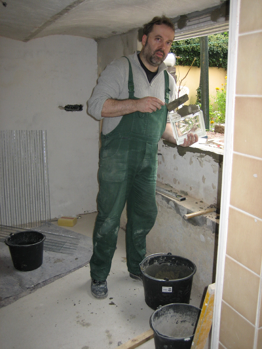 - komplett neue Glasbausteine vermauert