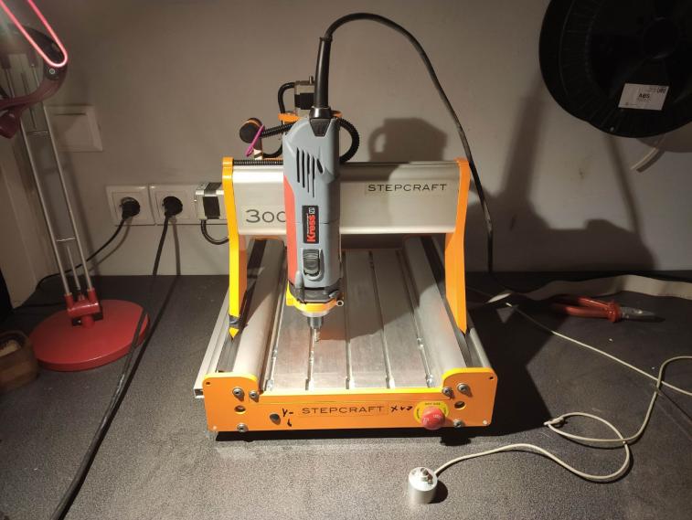 Was mich gleich beim ersten Testlauf der neuen Maschine unglaublich gestört hat war die Geräuschentwicklung schon im Leerlauf der Maschine. Ich habe daher die originale Steuerung rausgeworfen und gegen eine mit Trinamic Steppertreibern (TMC220) aus dem 3D Druck Bereich eingebaut. Das Ergebnis ist wie Tag und Nacht, die Maschine verfährt nun extrem leise. Funktioniert wunderbar mit Estlcam, sogar ein Höhentaster mit der Z-Achse war dabei und kann zusammen mit einem USB XBox Controller als externer "Jog Dial" problemlos angeschlossen/eingebunden werden. Diese Kombination ist total klasse, weil sie einfach die Bedienung der Maschine unglaublich erleichtertm...