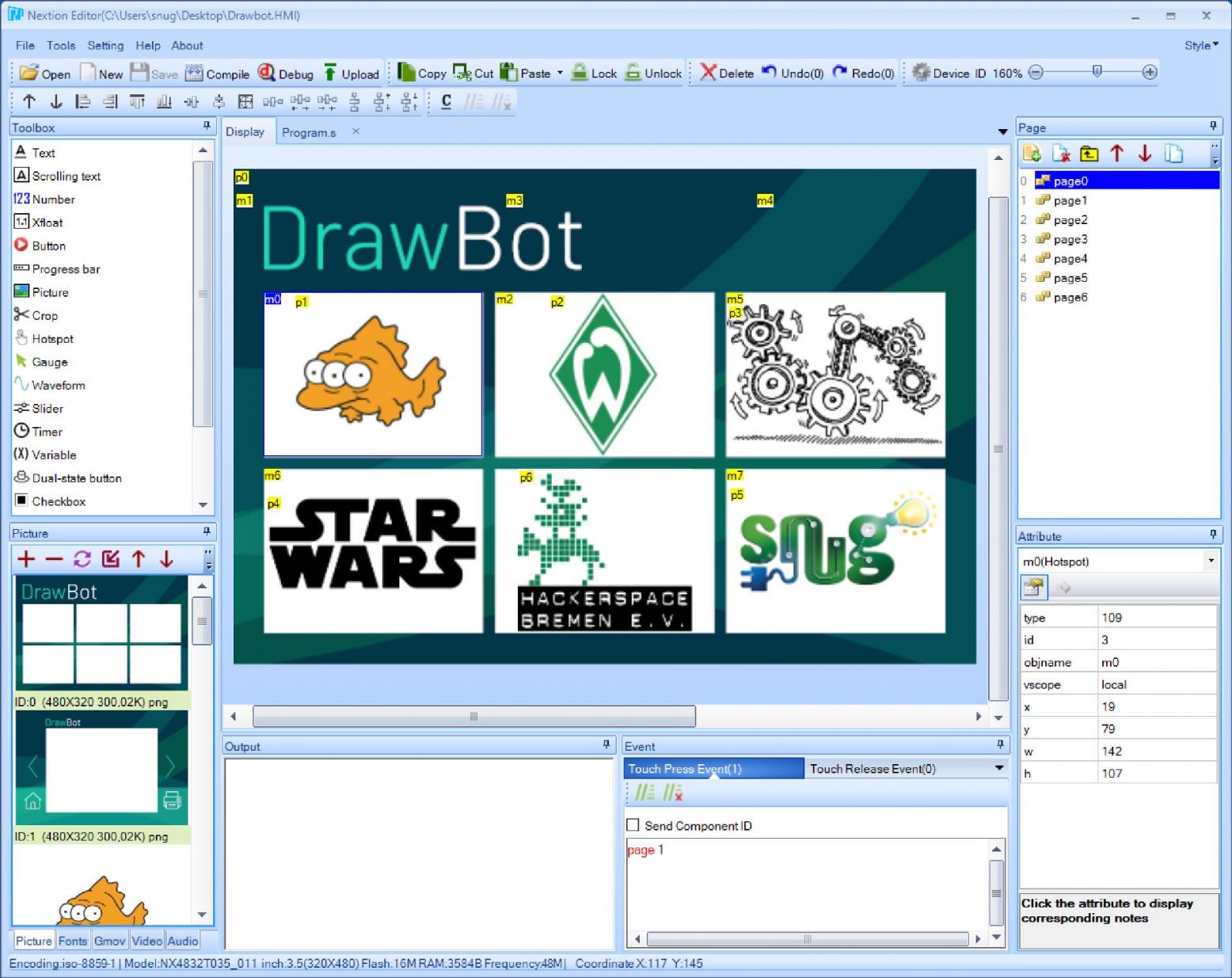 ...und jetzt noch für den Plotter die Erweiterung/Steuerung per Touchdisplay zur komfortablen Motivauswahl und autarken Modus, z.B. für Veranstaltungen (Bedienung durch Gäste):