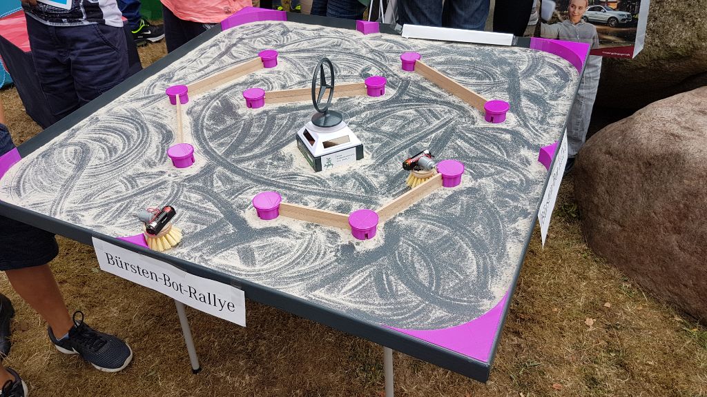 BuerstenBot Laufstrecke 12.08.2018 Was man doch mit ein bisschen Holz, Farbe und Bausätzen für ein paar Euro zusammen mit Kindern und Erwachsenen für einen Spaß haben kann....