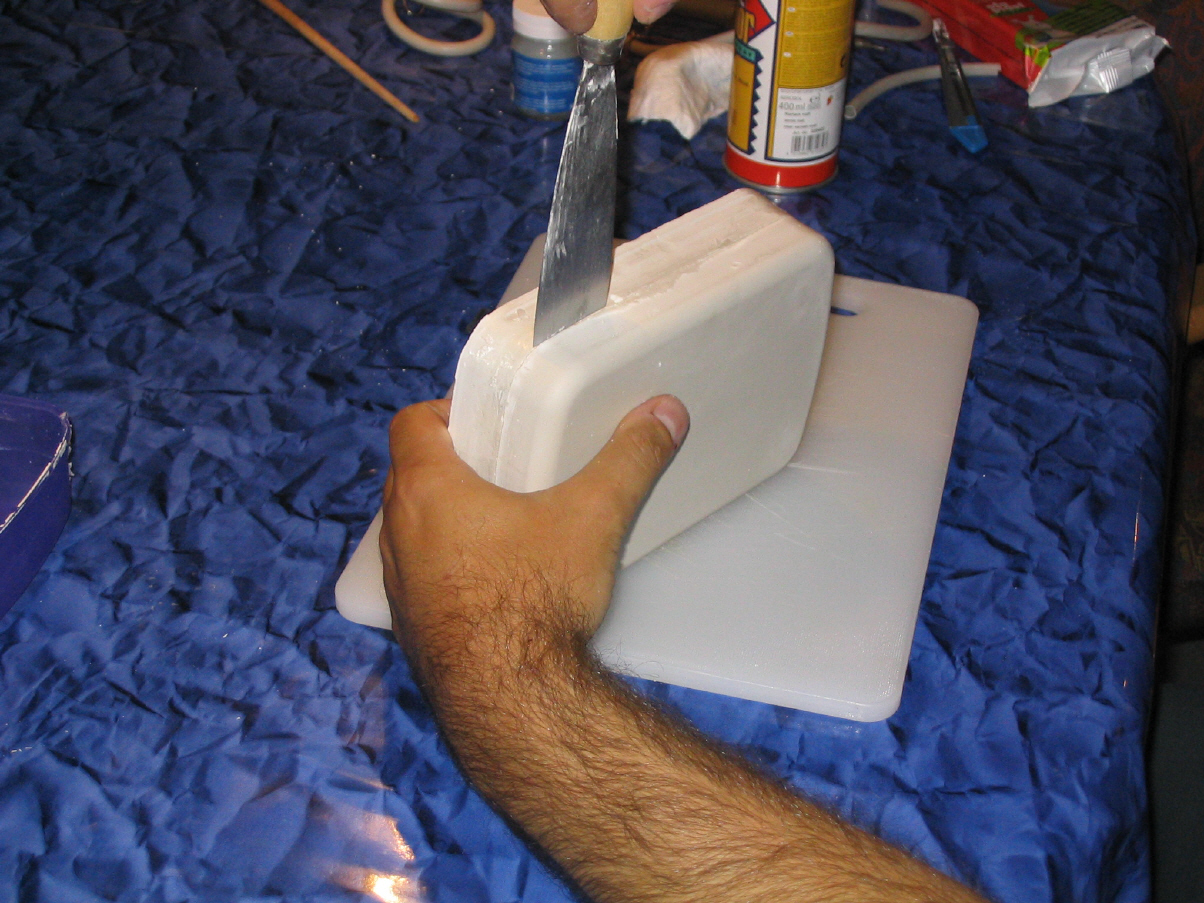Ich habe vorher noch einen Gusskanal in die jeweiligen Hälften geschnitzt und wollte dadurch ursprünglich das Latex in die wieder zusammengefüherte Form giessen.