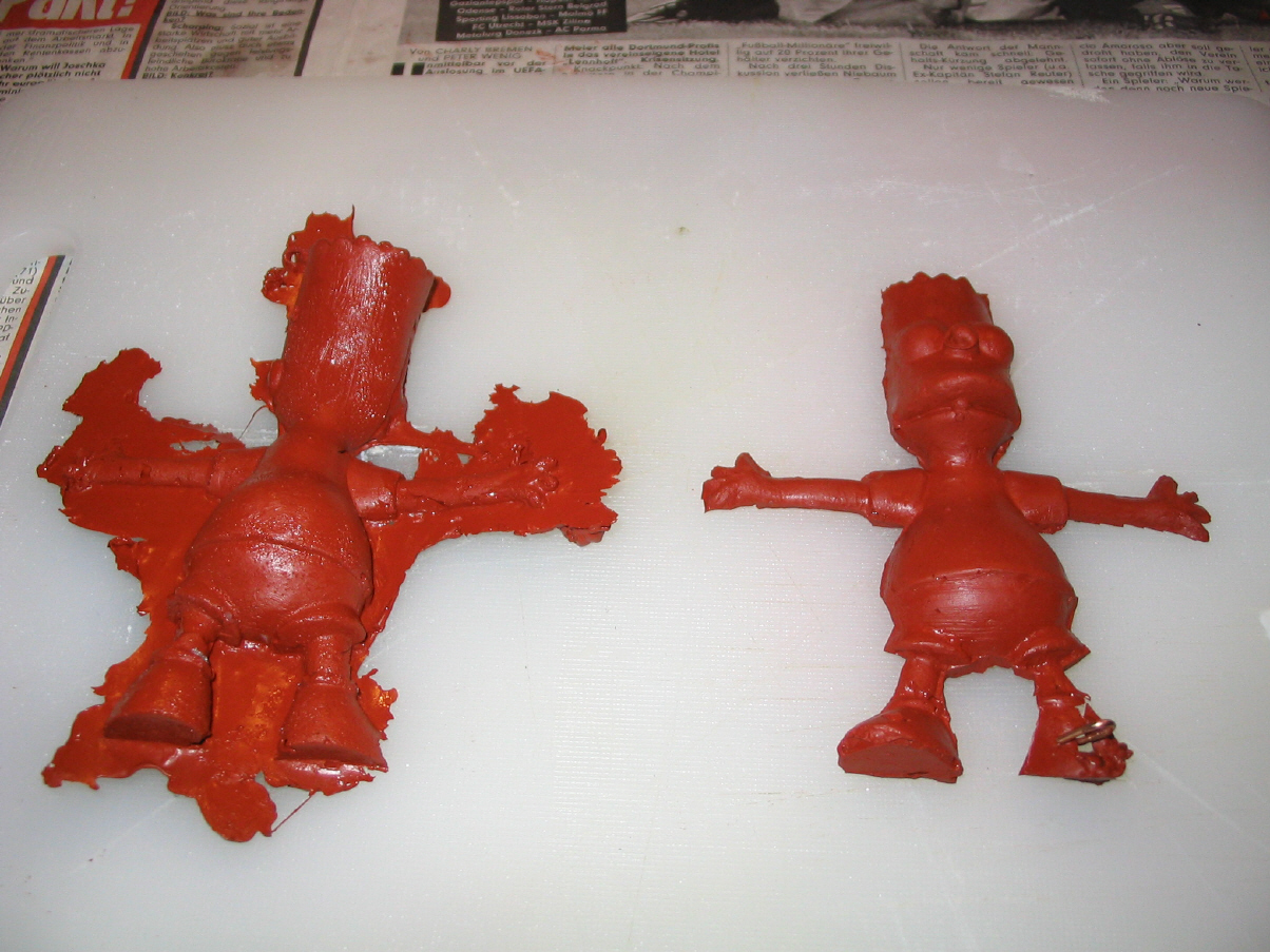 Und genau in dieser Phase ist mir eine Figur von Bart Simpson in den Sinn gekommen, die für diese Zwecke mehr als ideal war. Leider kann sie sich für diesen Zweck so gut wie gar nicht bewegen...also muss eine Biegefigur her - und die wollte ich jetzt selbst machen....