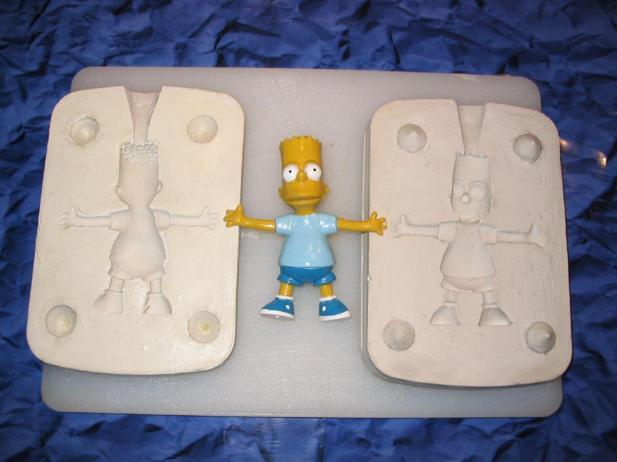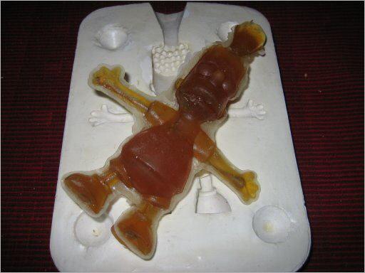 Die andere Gusshälfte und die Stellen, wo die Figur war, werden nun wieder zuerst mit Klarlackversiegelt und dann mit Vaseline bestrichen. Damit hat man nun den genauen Negativabdruck, von dem man nun unendlich viele Figuren erzeugen kann.