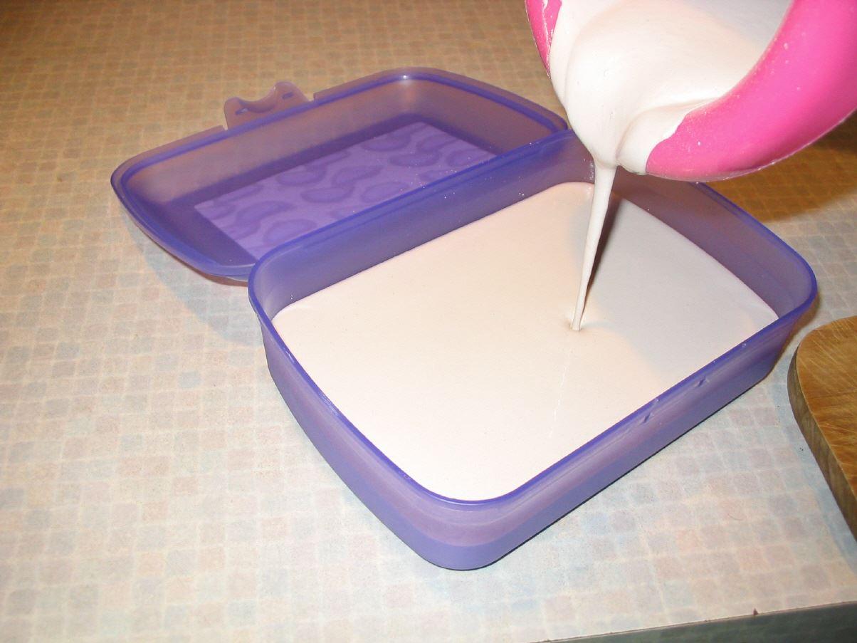 In einem früheren Versuch hatte ich mir einen kleinen Kasten aus Holz gebaut...dieses nimmt aber die Flüssigkeit der Gussmasse sehr stark und unregelmässig auf, daher ist es zu Rissen in der Form gekommen und hat diese unbrauchbar gemacht.