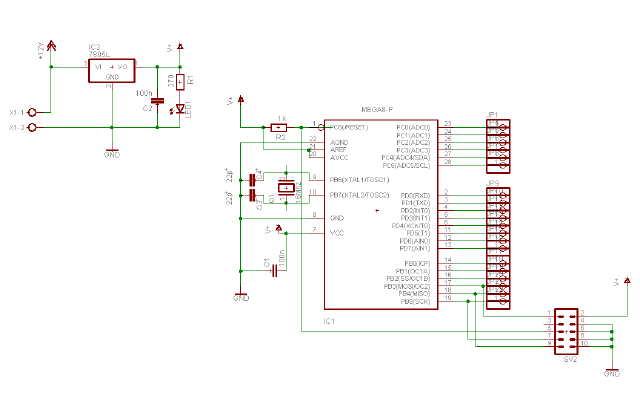 Diese kleine Schaltung enthält Alles, was man für den schnellen Start in die Microcontrollertechnik braucht. Damit kann man seine ersten kleinen Projekte realisieren und wird auch von mir sicherlich noch oft in zukünftigen Projekten verbaut werden....