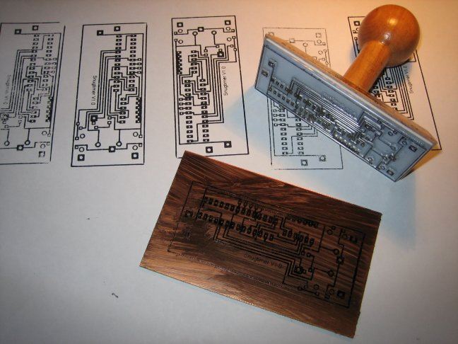 ...könnte man nicht den aufwändigen Prozesse einer Platinenbelichtung/-Entwicklung optimieren, mit Hilfe eines Stempels, auf den das fertige Layout übertragen wurde ? Halt auf eine ganz normale kupferbeschichtete Platinen einfach das Layout draufstempeln ?