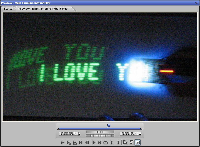 Die Funktionsweise ist eigentlich sehr schnell erklärt - es gibt eine LED-Zeile aus 8 Leuchtdioden...diese werden nun in Abhängigkeit von Richtung/Zeit/Weg ein- und ausgeschaltet. Durch die Trägheit des Auges, oder wie hier, dem Nachleuchten des verwendeten Papieres bleiben die Bildunkte vermeintlich "stehen"....dabei ist ein Buchstabe sehr einfach aufgebaut.