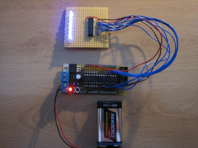 Microcontroller mit ein paar Zeilen programmiert, UV-LED`s über Treiberstufe angebunden, Batterie dran und ab ging`s....
