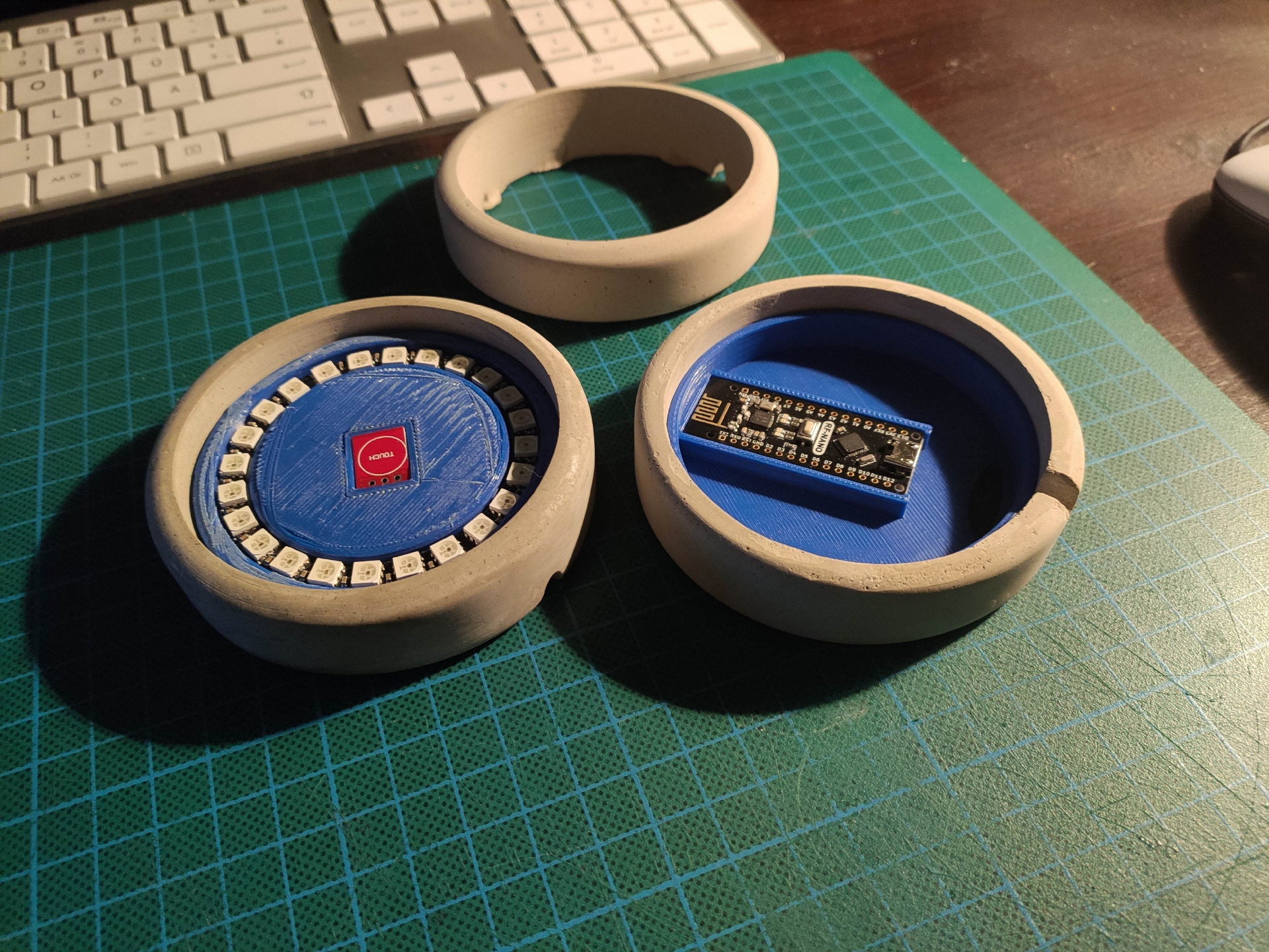Gehäuseteile wurden 3D-gedruckt, gelasert und aus Beton gegossen.