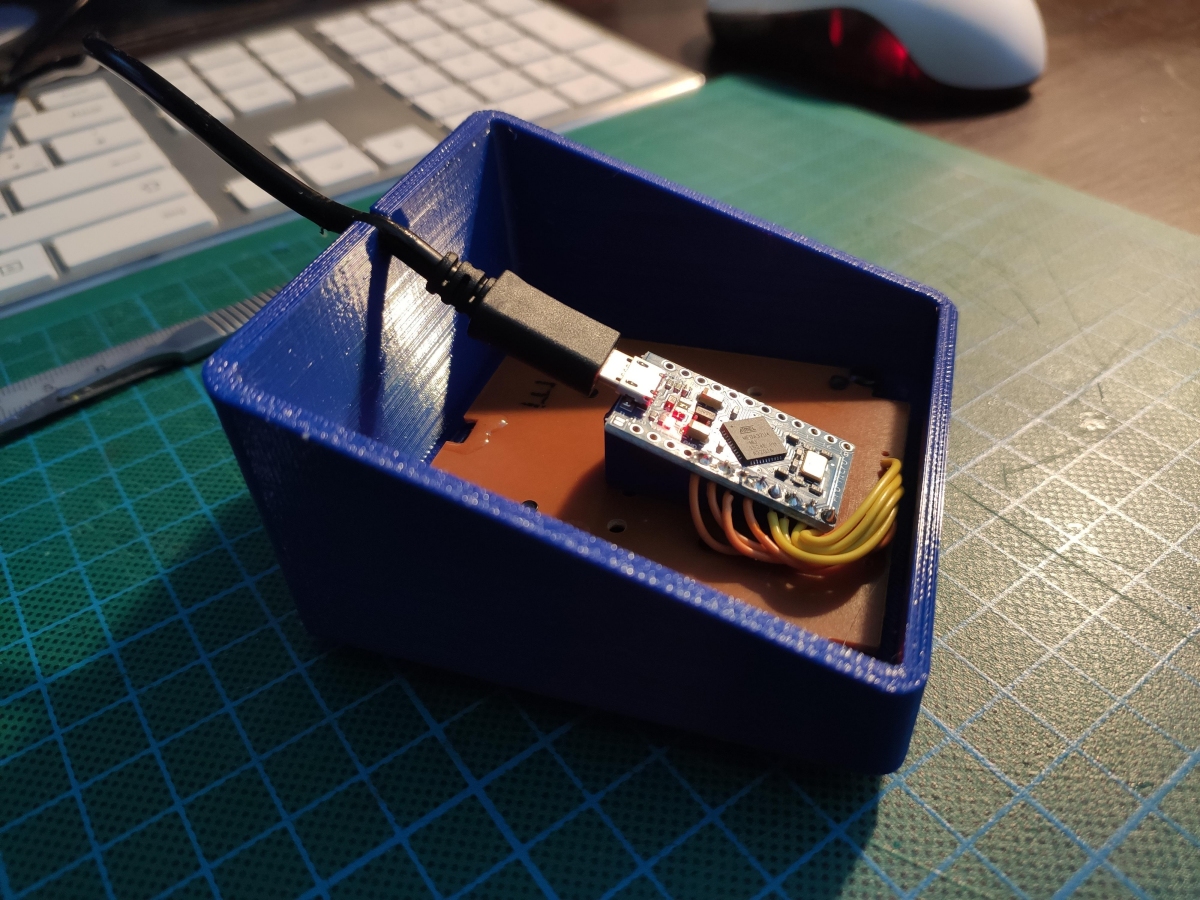 Somit wird hier ein kleiner Arduino Pro Micro benutzt, den man dann ohne jeglichen Treiber als "HID-Device" an den PC anschliessen kann (also wie eine USB Tastatur).