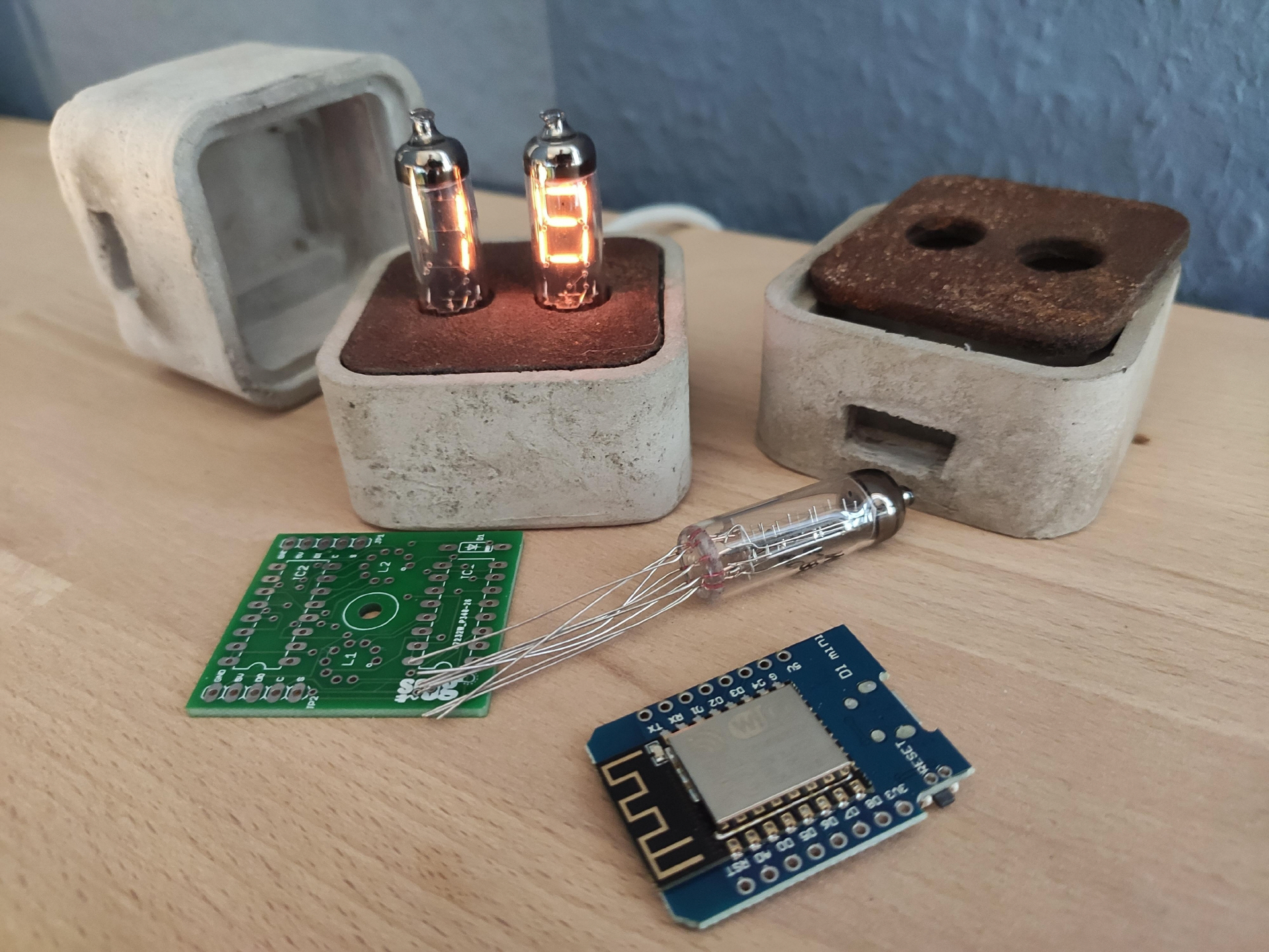 ich habe ja schon etliche von den Numitron Uhren gebaut, diese bisher entweder mit einem Gehäuse aus gefrästem Holz, gelasertem Acryl oder 3D gedruckt mit PLA.